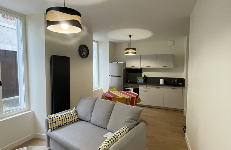 Situé en plein centre-ville, ce charmant appartement T2 meublé, entièrement refait à neuf, se trouve en rez-de-chaussée.