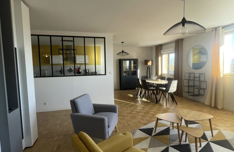 L’Agence Bannier vous propose à la location, en hypercentre d’Orléans, un appartement meublé de type F4. Il se compose d’une entrée donnant sur la pièce principale, d’une cuisine entièrement équipée (réfrigérateur, micro-ondes, hotte, lave-vaisselle, four, plaque électrique), d’une salle de bains avec machine à laver, ainsi que de trois chambres, dont une avec suite parentale.