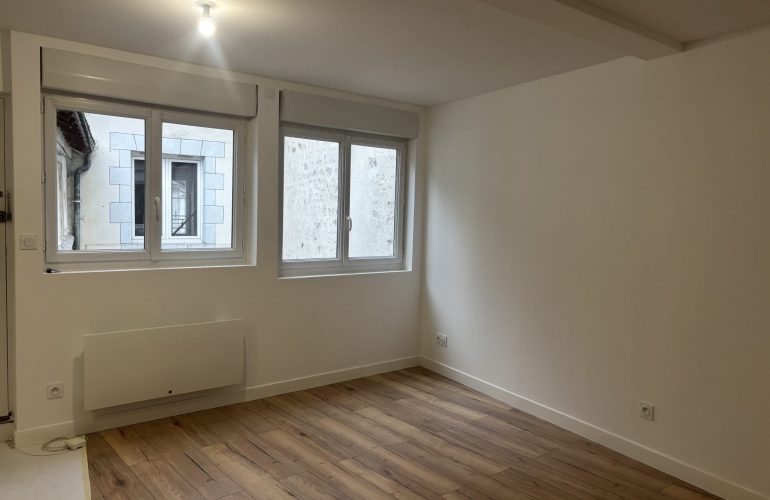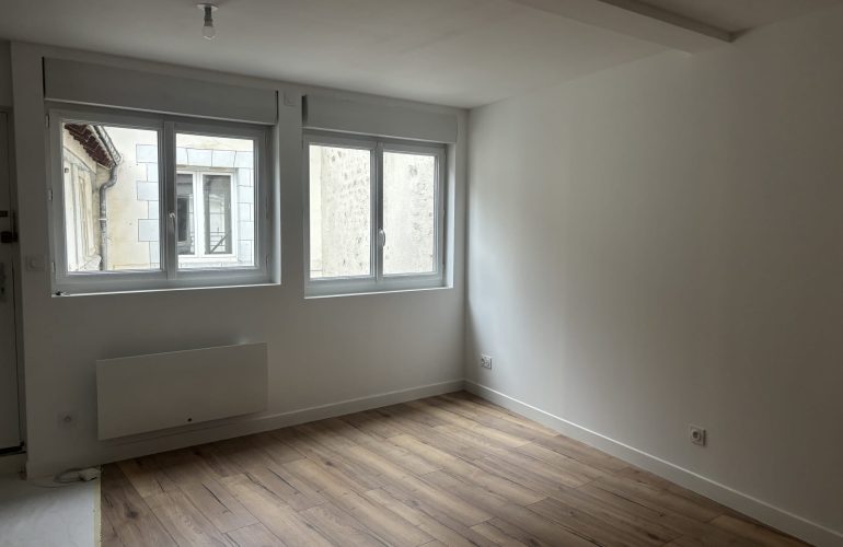 ORLEANS, RUE BANNIER – Studio de 26m2 en plein centre, proche toutes commodités, comprenant : entrée avec placard, pièce principale au calme avec coin cuisine équipée (plaques, frigo, hotte), salle d’eau et WC. Chauffage individuel électrique. Libre