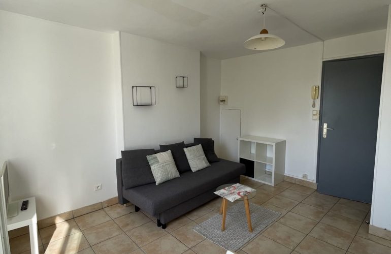 Studio meublé de 19m2 avec cuisine ouverte semi équipée, pièce à vivre, salle d’eau, situé au 2ème étage d’une résidence sécurisée.