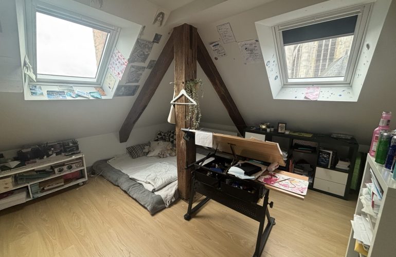 L’AGENCE BANNIER vous propose à la location à Orléans, Rue Neuve Saint-Aignan, à proximité des écoles et des bords de Loire, un appartement F4 en duplex de 123 m2 au sol, entièrement rénové avec des matériaux de qualité, comprenant une entrée, un WC séparé, un salon avec cuisine ouverte aménagée et équipée (four, plaques, hotte, lave-vaisselle, micro-ondes), une chambre avec placard, à l’étage une chambre et un bureau, une cave, chauffage individuel électrique, disponible le 30/04/2026, à visiter sans tarder.