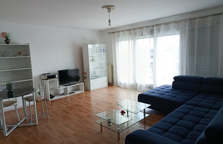 À louer, appartement F3 meublé de 78,48 m2, idéalement situé, proche immédiate du tram et de tous commerces. Il comprend une entrée avec placard, un débarras, un séjour spacieux donnant accès à un balcon de 15,7 m2, une grande cuisine, une salle de bains, WC séparés et deux chambres.Parking libre en sous-sol de la résidence.Chauffage individuel gaz. Disponible immédiatement.