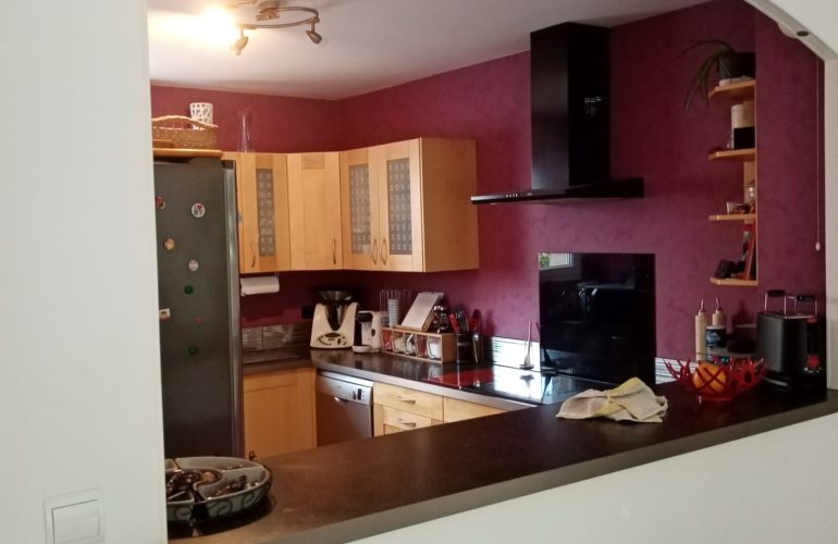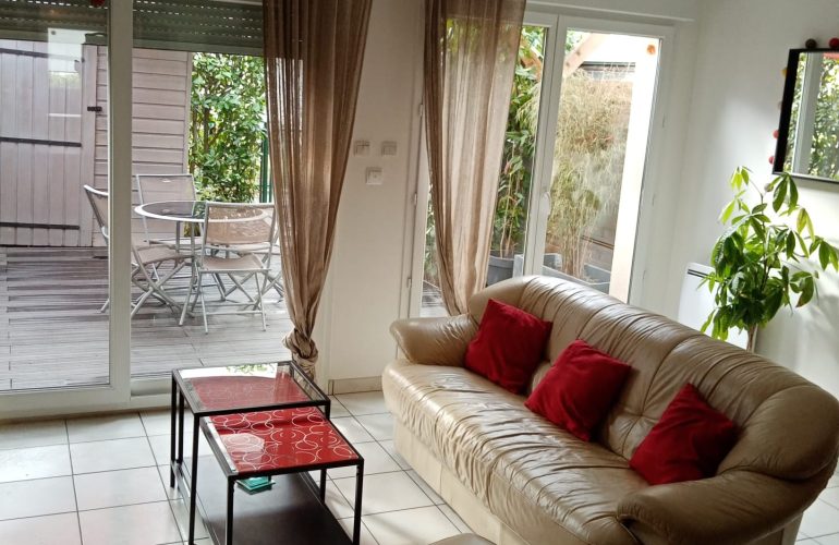 La colocation comprend un espace séjour, une cuisine totalement aménagée et équipée, un jardin et une partie terrasse.
