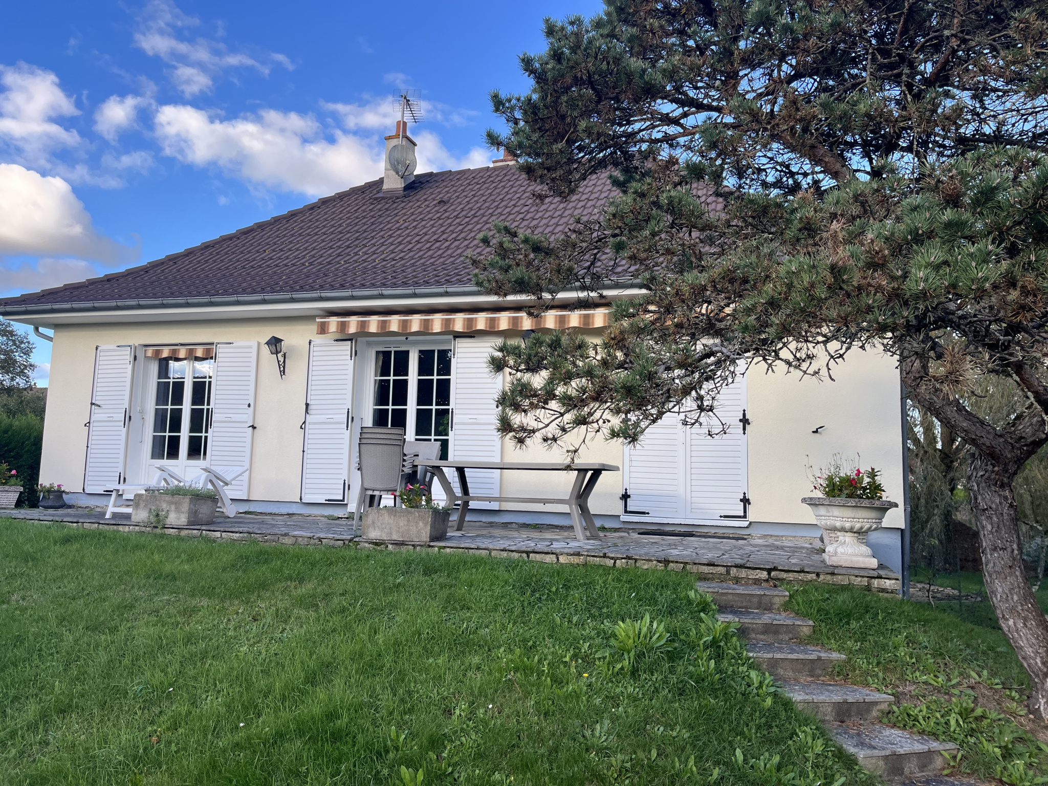Vous serez séduit(e) par le grand jardin arboré, parfait pour des moments de détente en famille ou entre amis, avec la possibilité de créer un potager ou d’ajouter une aire de jeux.