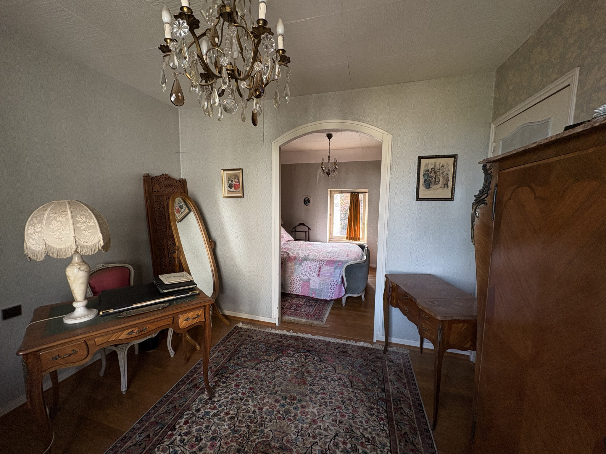Entrée, séjour salon traversant, avec poutres et belle cheminée, cuisine aménagée, véranda, 1 suite RC avec salle d’eau wc, dressing,